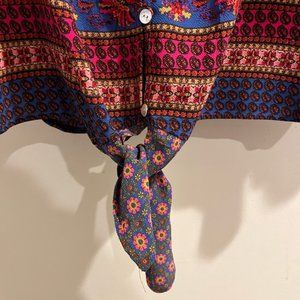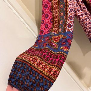 This Fig and Flower women’s boho blouse has elastic 3/4 sleeves. It is a size xl and is in excellent condition.