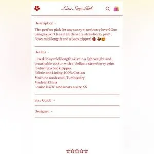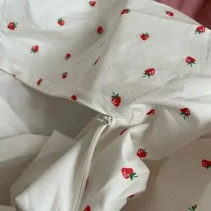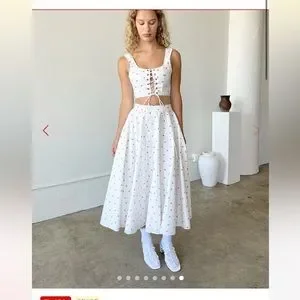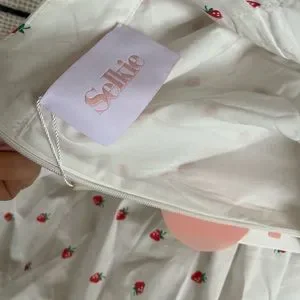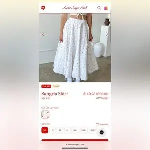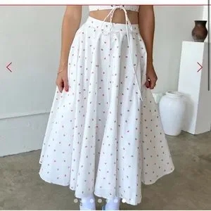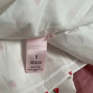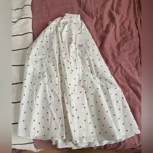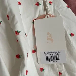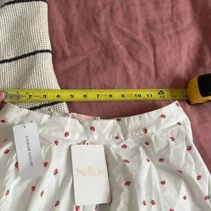 New with tags, never worn. Lisa Says Gah! Sangria skirt. Fully lined, white cotton with strawberry pattern. Hidden back zipper closure. Size small.