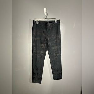 Eileen Fisher Fresco Organic Cotton Blend Textured Black Jacquard Pant Size 8