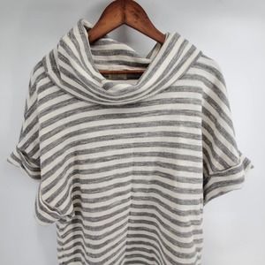 Anthropologie t.la Taupe and Cream Striped Top Cowl Neck Roll Sleeve/ Hem| S