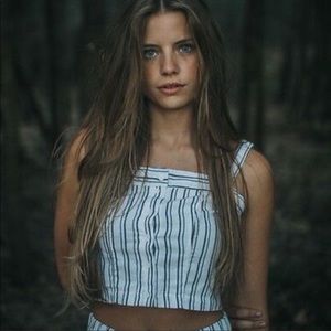 Cute Girl Summer is here! Little Cotton-Linen blend crop top in white with dark blue stripes. Button front closure with stretch smocked back in a bustier silhouette. Sturdy straps are fully adjustable. No size label, listing as small according to measurements.