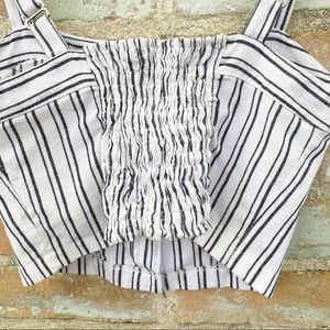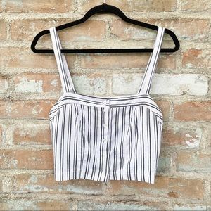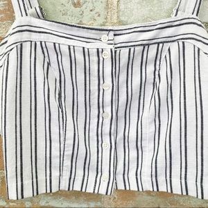 Brandy Melville Bustier Crop Top White Blue Stripe Button Up Tank Linen Cotton