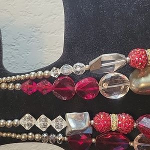 bi level various ruby red cabochon style bead.Various clear, ruby red glass stone.Silver metal round beads