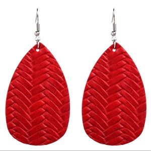 Red Braided Faux Leather Leaf Tribal Ethnic Drop Earrings