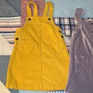 Corduroy style overall dresses used but in good condition, the pink and white pant overalls have a stain in the back but are perfectly functional the dkny dress is denim