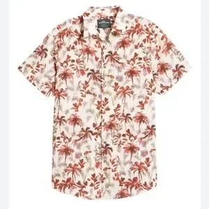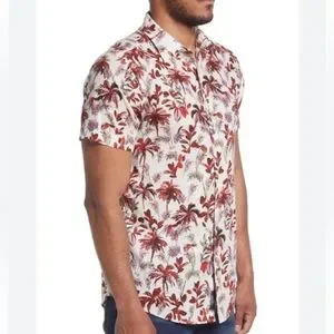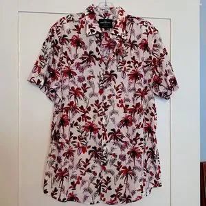 Ross & Gunn Italian 100% Cotton Hawaiian Print Short Sleeve Button-up Shirt