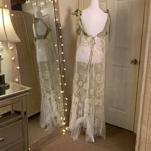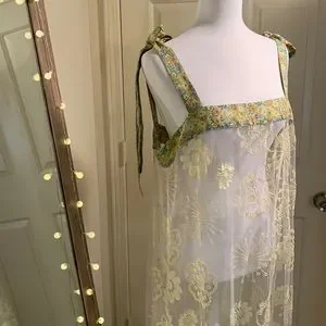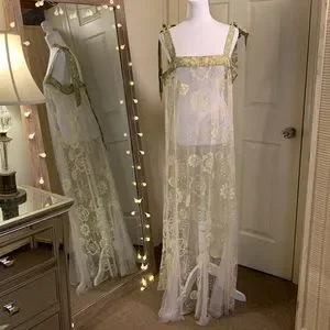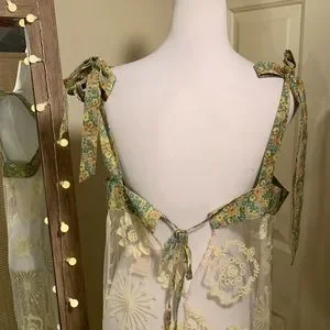 So beautiful and billowy, this eye-catching slip is featured in a sheer fabrication and maxi-length with floral embroidered details and adjustable ties at the shoulders.