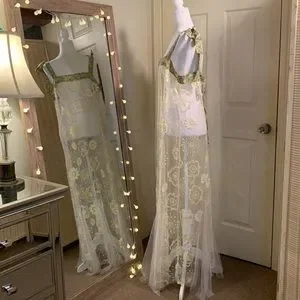 This beautiful maxi can be layered over your favorite bodysuit or an opaque slip for the perfect touch of texture.