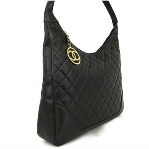 CHANEL Quilted Matelasse CC Logo Lambskin Shoulder Bag Black