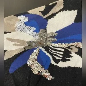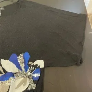 INC Floral Sequence Cotton Short Sleeve Sweater *Like New*. Size M