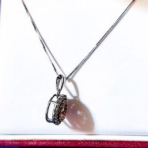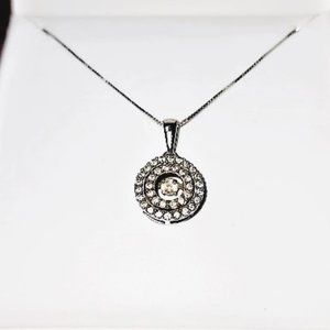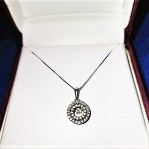 Helzberg Double Halo w/Floating Center Diamond 14K White Gold Necklace New
