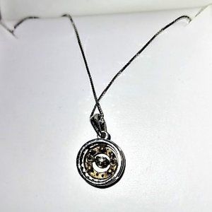 Diamond Double Halo with floating center diamond Pendant in 14K White Gold (1/2 ct. tw.), Diamonds are enclosed with yellow gold hinged.