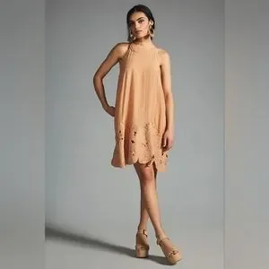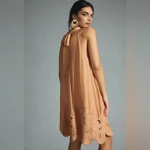 ANTHROPOLOGIE FLORAL CUTWORK HALTER DRESS.