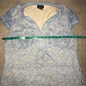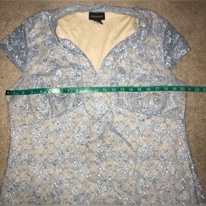Size 14 Lane Bryant lace blouse, V-neck, light blue, under lining.