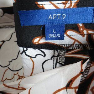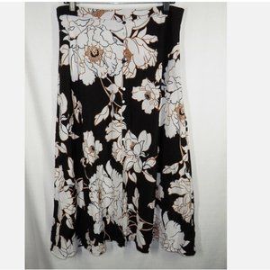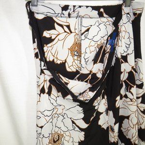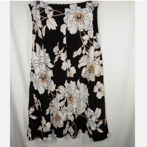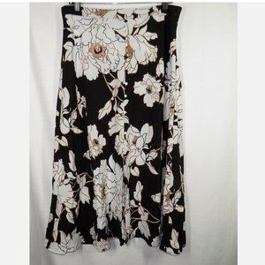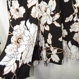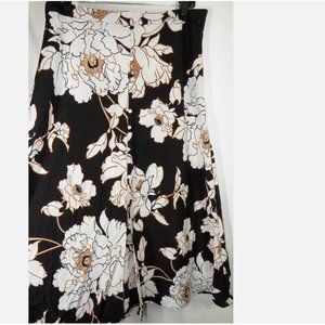 APT. 9 Women's Black Floral Front Slit Midi Skirt Decorative Buttons Size Large