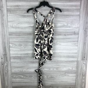 Bcbgmaxazria Cream Leaf Pattern Silk Tie Waist Top Size Small $149