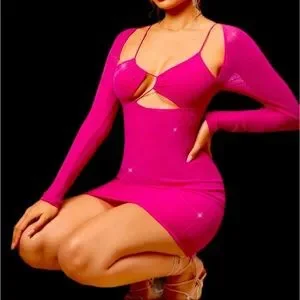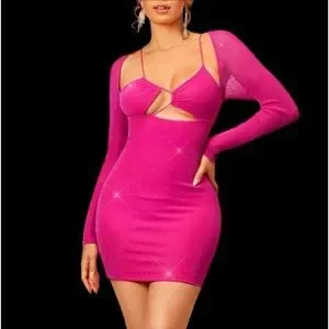 Barbiecore Hot Pink Y2K Sexy Cutout Bodycon Club Sparkle Mesh Metallic Dress