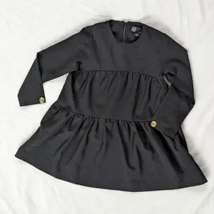 Little Cocoon Black Tier Dress with Gold Button Accent Girls' 3x