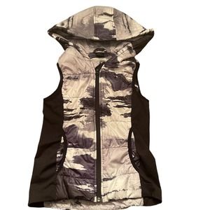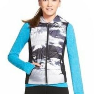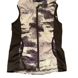 Zella Girl Black/White Tie Dye Quilted Hooded Winter Puffer Vest Size M (8/10)