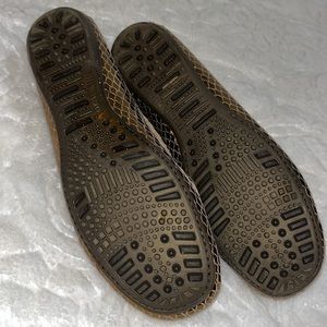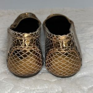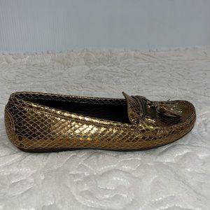 Stuart Whitman, tasseled slip on leather loafers, size 7 Medium, very good condition, nearly worn, bronze gold color, very chic