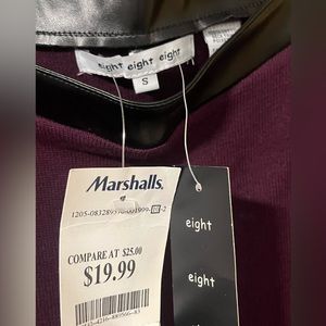 Eight Right Eight Women’s Purple Sweater Dress Tunic Small Pleather Pockets NEW