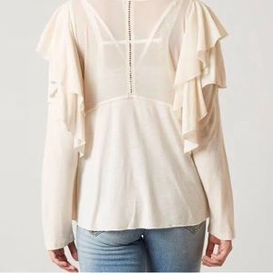 Free People La Cienega Embroidered Top Shirt Blouse Almond Ivory