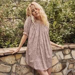 The Odessa is a semi-sheer breezy daydream, a mini to see you through the long, warm days and nights. Tonal smocking at the neckline lends subtle charm with a design rosettes. The puff sleeves fall to the top of the elbow, culminating in a miniature ruffle that creates a delightfully old-fashioned fullness. Gathering at the yoke extends to create a tent shape for an easy piece you'll wear through the warmest days and beyond.