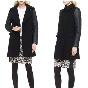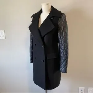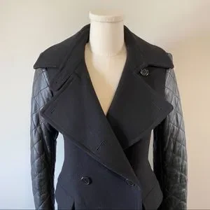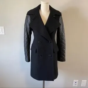 Club Monaco Carolina Wool Pea Coat Leather Sleeves
