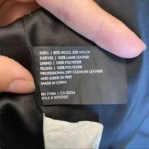 Sleeves 100% lambs leather (very soft and supple for comfort)
