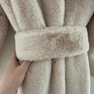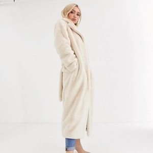 ASOS DESIGN plush faux fur longline maxi with belt in cream