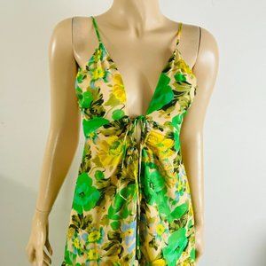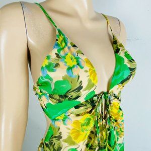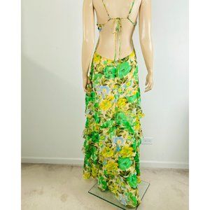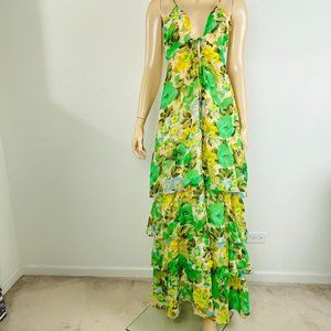 Astr Dress Aneira Green Yellow Blue Floral Tiered Ruffled Women's XL Maxi Dress