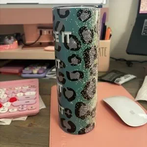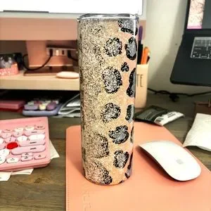 This 20oz stainless steel tumbler comes with slide lid and straw.
