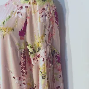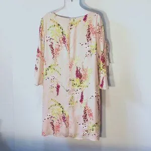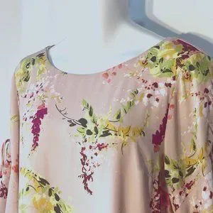 Reposhing this item I purchased from @agjtiffin24. EUC. Loved it, but it was too big for me. Color is an Apricot/peach with beautiful florals. Dress is lined with bust darts and very pretty sleeves. 24” chest and 37” length. No stains or snags and smoke free