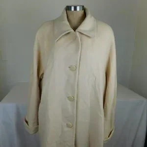 Fleurette Women Ivory Long Lined Coat 4 Piece Button Collared Vintage USA FLAW
