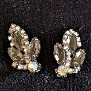 Vintage 50's Clip Earrings with Smoky/Aurora Borealis Stones and Silver Tone