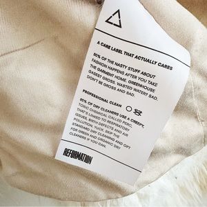 Teddy faux fur coat from Reformation. Made in USA. Deadstock faux fur fabric. Fluffy and warm. 3 toggle closure. Pockets. Collared. Off white.