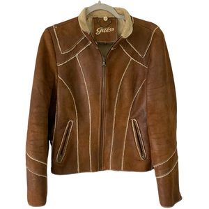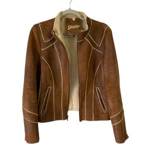 Vintage Guess Shearling Vegan Leather Front Zip Winter Jacket Women’s Size Large