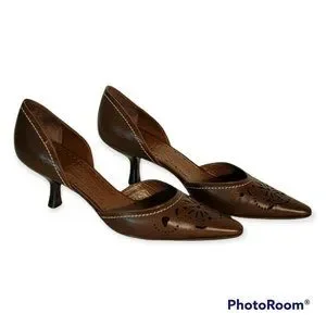 Salvatore Ferragamo Womens Brow Leather Kitten Heels Size 6.