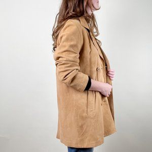 Vintage Suede Leather Camel Double Breasted Peacoat Trench Jacket Coat Shacket