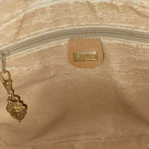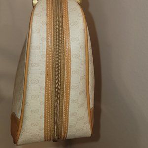 Breakdown: Authenticated and discovered this was crafted in the 1980s with love in Italy and is the epitome of timeless elegance and class. Its uniquely designed with a jacquard pattern covering over a beautiful cream/ beige color canvas with light brown accents. The bag is rectangular in shape with regal gold hardware that features the gorgeous Gucci stamp. The closure is the infamous iconic double zipper that works as smoothly as fresh churned butter. It zips around completely. The handles are genuine leather with expert craftmanship stitching. Additionally, the patches of genuine leather along the bottoms and around the brand stamp have impeccable stitching. I started to paint the bottom left corner, but stopped as I feel it takes away from the natural beauty. This inside is very clean and appears to be leather. The date code and iconic zipper pull are clearly pictured to ease any worries you may. One side of the interior has a pocket, and the other side has a zippered pocket that is lined with gorgeous gold jacquard monogram. The bottom of the bag has 5 FEET.