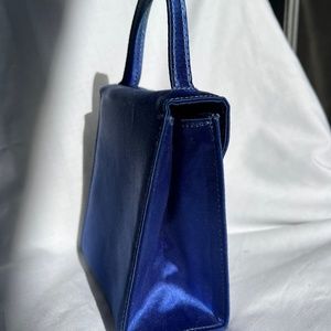 Royal Blue Vintage Fred Hayman Handbag, 5.5" length, 6" height, 3" wide, small liquid stain on flap (see picture). Designed by the Godfather of Rodeo Drive. Today, behind the Louis Vuitton flagship on Rodeo Drive at Dayton Way, a street sign marks the spot where Fred Hayman’s retail empire–Giorgio Beverly Hills, followed by Fred Hayman Beverly Hills—ruled the zone from 1961 to 1998. *Fred Hayman Place, 90210 * Own a piece of history.