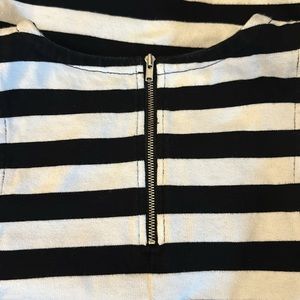 BANANA REPUBLIC Black and White stripe sleeveless shell. Exposed zipper in back. Sturdy 100% cotton knit construction. Great for layering or on its own! Don’t miss out on this Banana Republic black and white stripe knit sleeveless top!