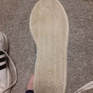 Women's Size 8.5 Adidas Cloudfoam Advantage Shoes White w/ Black Stripes