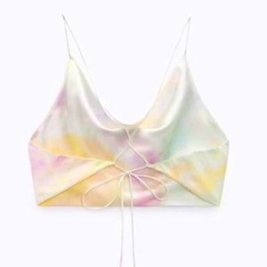 Zara Tie Dye Satin Cowl Neck Crop Top