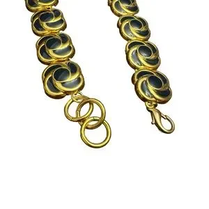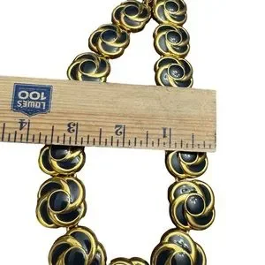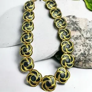 Vintage Goldtone Black Enamel Swirl Link Necklace