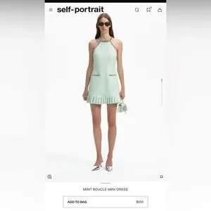 Self Portrait MINT BOUCLE MINI DRESS