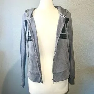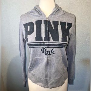 PINK VICTORIA’S SECRET Heather Grey Zip-Up Hoodie w/ Front Logo