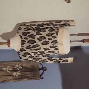 Grunge Distressed Animal Print Sweater Medium White Gray