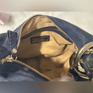 Authentic Jimmy Choo Hobo bag with python accents in Navy. Silver hardware. The silver bangles are removable and can be worn separately. Comes with COA. Great condition!