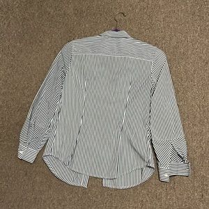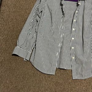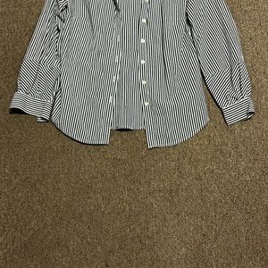 Here is a beautiful petite 4P sort by Banana Republic. White with grey stripes. Button down and light weight for comfort. Label says tailored fit. 💕